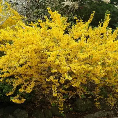 Форзиция "Голдзаубер" известна своим обильным и ранним цветением, которое происходит в период с апреля по май и длится около трех недель. Небольшие колокольчатые цветы ярко-желтого цвета создают впечатляющее зрелище, наполняя сад солнечным светом и радостью. Это растение станет настоящим очагом притяжения для пчел и других полезных насекомых.