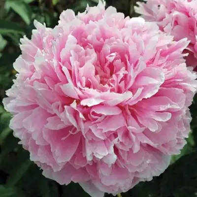 Растение достигает средней высоты, около 80-90 см. Его побеги прямостоячие, с сильным стеблем и умеренным ветвлением. Светло-зеленые листья дополняют утонченный образ пиона. Особого внимания заслуживают его крупные махровые цветки розовидной формы, достигающие в диаметре 20-25 см. Нежно-розовая окраска лепестков и светлая насыщенность цвета придают цветкам пушистый и изящный вид. Запах пионов Пиллоу Ток пьяняющий, что добавляет еще больше шарма этому растению.