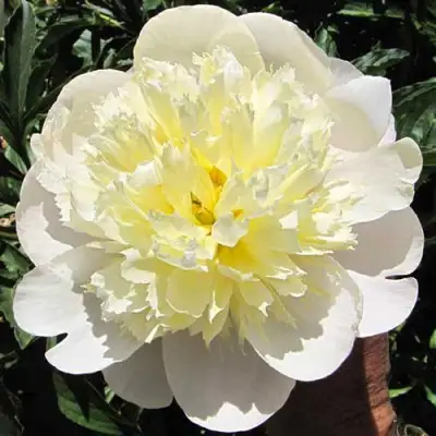 Цветки анемоновидного типа, крупные, диаметром 12-15 см, имеют роскошную махровую структуру. Их окраска — удивительное сочетание розово-кремовых лепестков с ярким желтым центром, что придает им особое очарование. Этот пион обладает бледной, но элегантной двуцветной окраской, которая добавит шарма любой цветочной композиции.