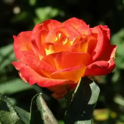 Цветок этой розы имеет прекрасную окраску - роза кремового-желтого цвета с красноватой окраской на внешних лепестках. По мере распускания цветка, особенно в жаркую погоду, малиновая окраска становится все ярче. Форма цветка соответствует классическим чайно-гибридным розам, а его размер отличается крупными размерами - диаметр составляет от 12 до 14 см. На стебле может находиться от 1 до 3 цветков.
