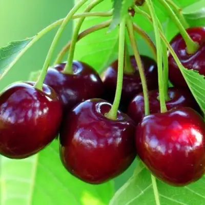 Плоды вишни средней величины (примерно 3,7 г) имеют округлую форму и насыщенно темно-красный цвет. Они легко отделяются от плодоножки, что делает сбор урожая простым и комфортным. Мякоть темно-красного цвета, средней плотности, обладает восхитительным кисло-сладким вкусом, что отражается на высоких дегустационных оценках – 4,5 балла.