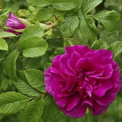 Роза Ханса начинает цвести в начале лета и радует глаз до первых заморозков. Цветки крупные, махровые, диаметром 7–10 см, насыщенного розово-пурпурного цвета. Плотные лепестки формируют объемные чашевидные цветки, а сильный пряный аромат наполняет сад особой атмосферой. Многократное цветение делает куст декоративным на протяжении всего сезона.