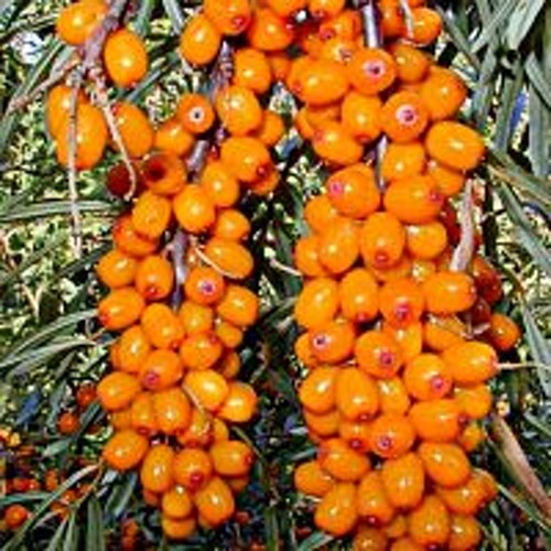 Облепиха — это не только красивое растение, но и кладезь полезных веществ. В ягодах содержится 7,2% сахаров, 1,5% кислот и 105 мг% витамина С, а также масла в количестве 7,2%. Дегустационная оценка плодов составляет 3,8 балла, что свидетельствует о высоком качестве и вкусовых достоинствах. Ягоды, которые начинают созревать в конце августа – сентябре, имеют крупный размер и объемную массу — около 0,8 грамма. Их цвет варьируется от ярко-оранжевого до оттенков румянца, а форма плодов — широкоовальная. Сладко-кислый вкус с легким фруктовым ароматом делает ягоды идеальными для употребления в свежем виде, а также для приготовления варенья, соков, компотов и настоек.